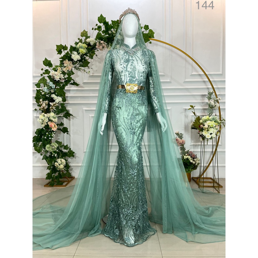 Harga murah di lapak alyastore48. Gaun pengantin slim duyung hijau wardah.